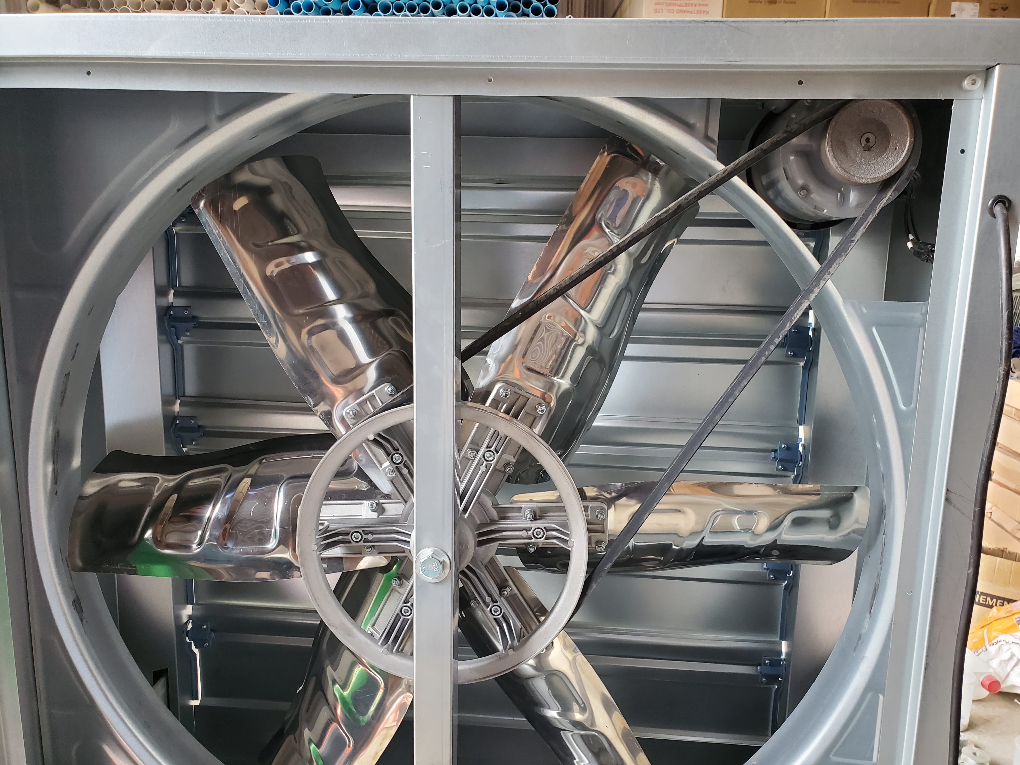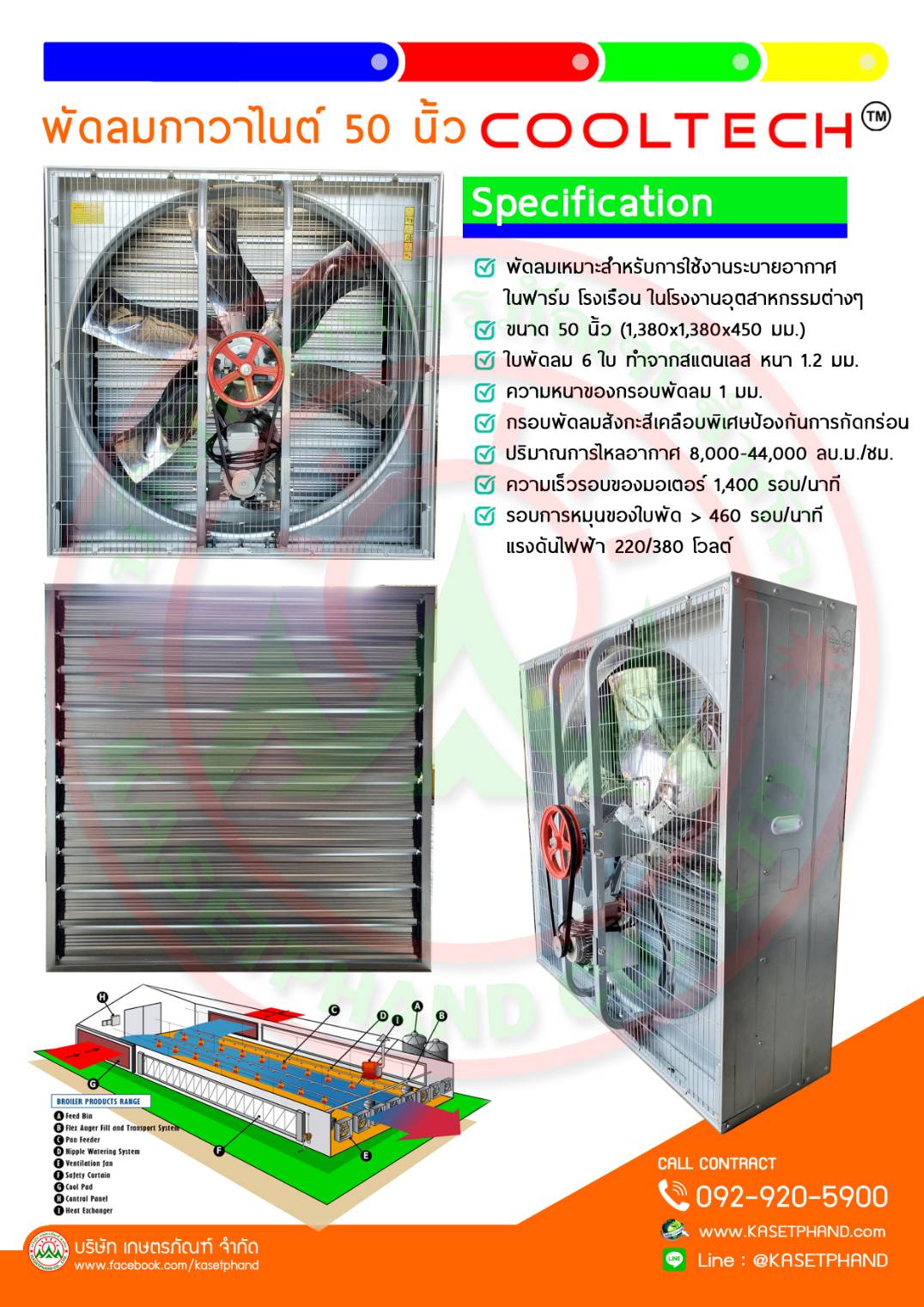 พัดลม 50 นิ้ว 6 ใบพัด ไฟเบอร์กลาส (พ่วงเครื่องยนต์) ตะแกรงหน้า-หลัง (ไม่รวมมอเตอร์)