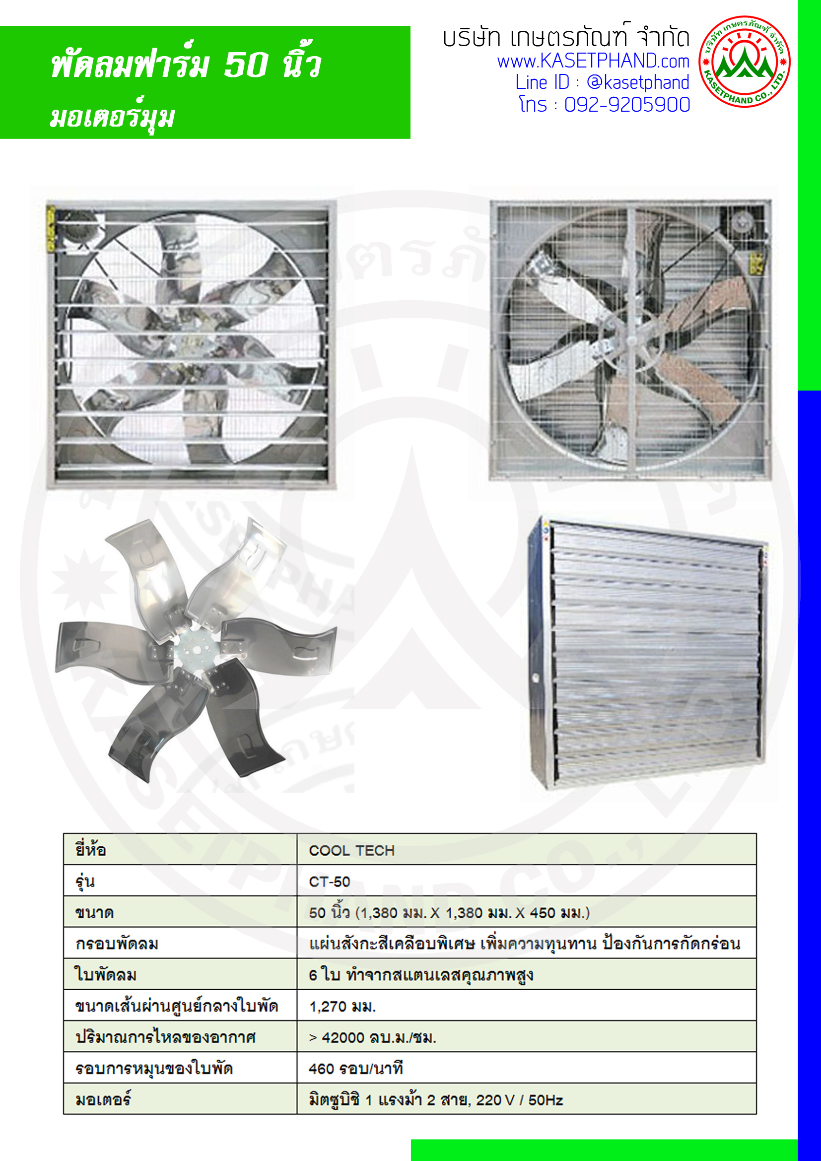 พัดลม 50 นิ้ว 6 ใบพัด (มอเตอร์มุม) ไม่รวมมอเตอร์