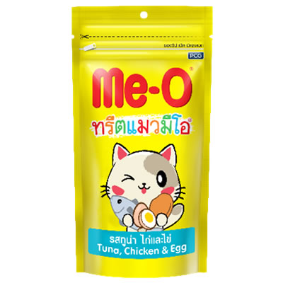 รสปลาทูน่า ไก่ และไข่(ซองกรุบกรอบ)ทรีตแมว มีโอ MeO แบบเม็ด ทรีตกรุบกรอบ ขนาด 50 กรัม ราคา 15 บาท (ราคาไ